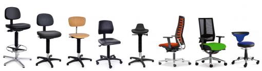 Arbeitsstuhl, Arbeitsdrehstuhl, Werkstatthocker, Stühle, Stehhilfe, Fußablagen, Fußstütze, Arbeitstisch, Regale, Transportwagen, Transportgeräte